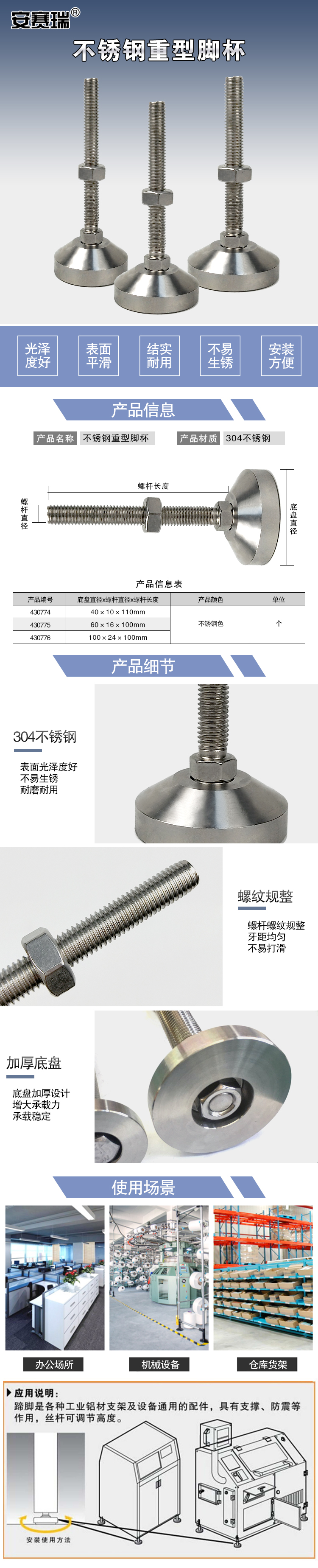 安赛瑞 不锈钢重型脚杯 430776 DP100*M24*100mm