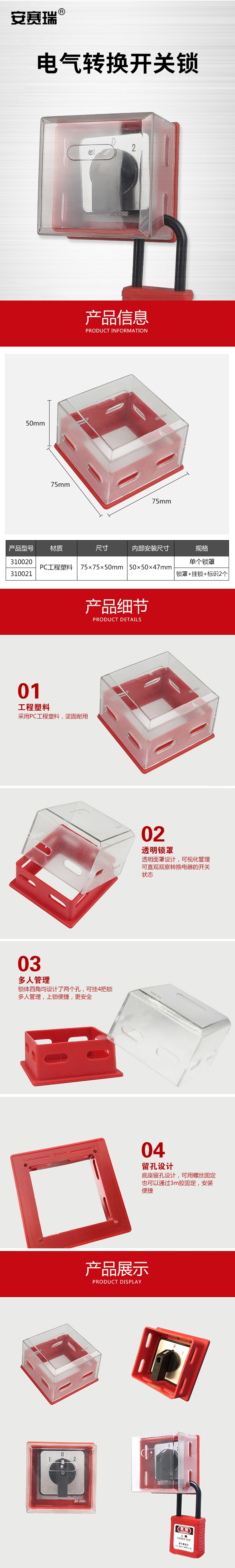 安赛瑞 电气转换开关锁 D66套装 锁罩+挂锁+标识2个 310021 红色