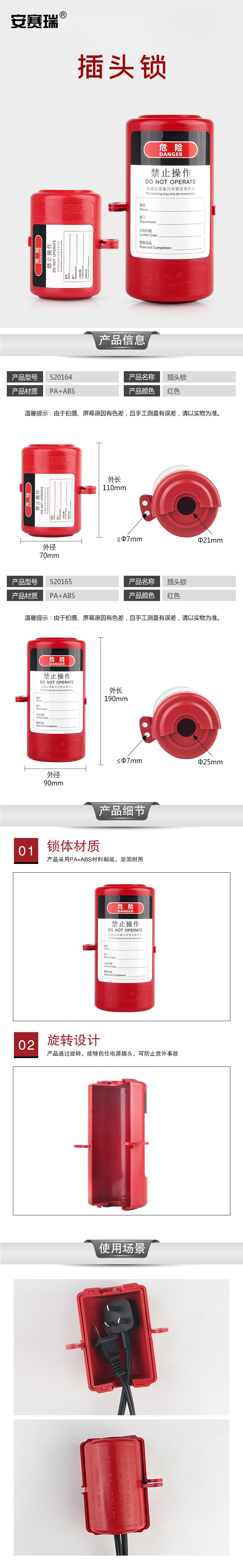 安赛瑞 插头锁 内径Φ58mm*内长95mm 520164 红色