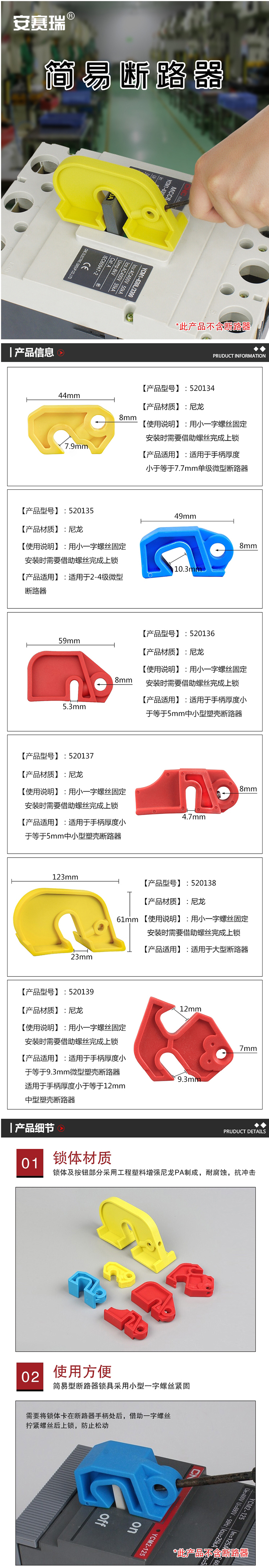 安赛瑞 简易断路器 520137 适用于手柄厚度≤5mm中小型塑壳断路器