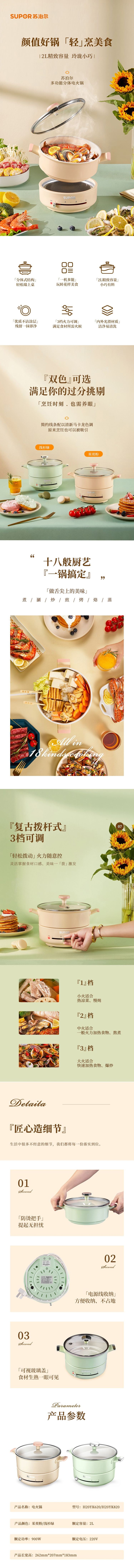 苏泊尔(SUPOR) 多功能电火锅 H20YK820 2L 绿色