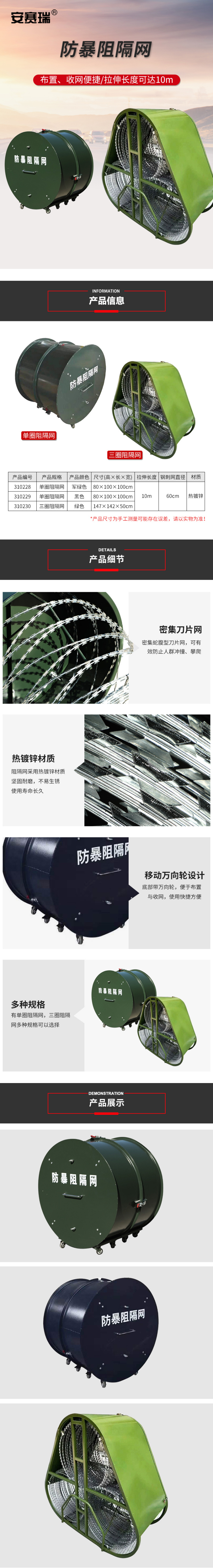 安赛瑞 三圈防暴阻隔网 310230 165*143*55cm 拉伸长度10m