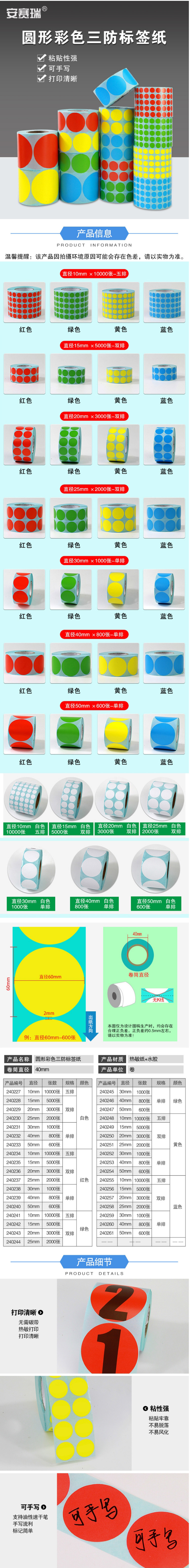 产品名称 圆形彩色三防标签纸