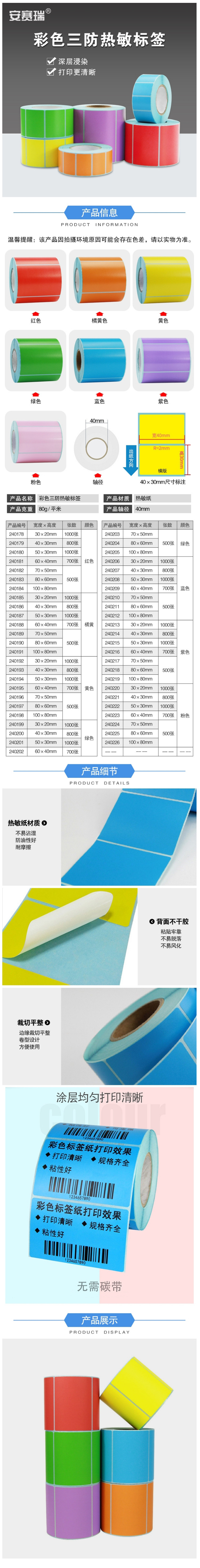 安赛瑞 彩色三防热敏标签 横版 40*30mm 240221 樱粉色 800张/卷