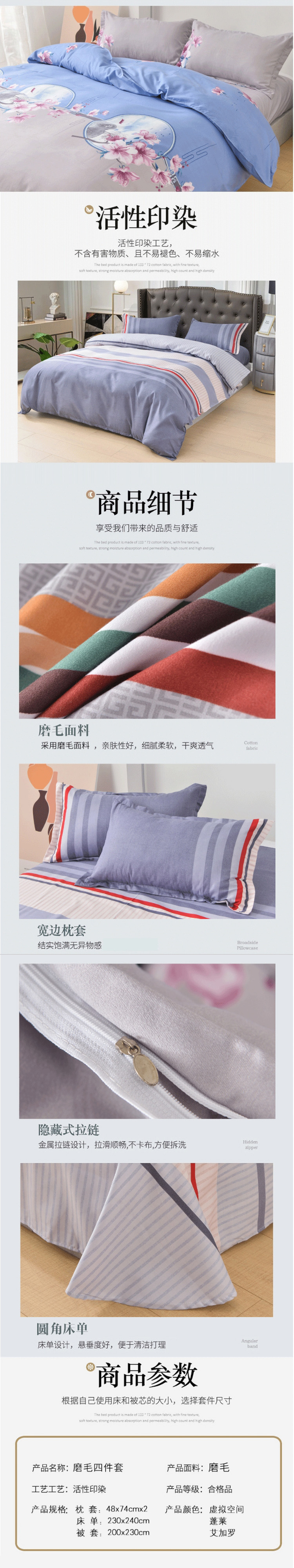 尺寸 被套200*230cm/床单230*240cm/枕套74*48cm*2