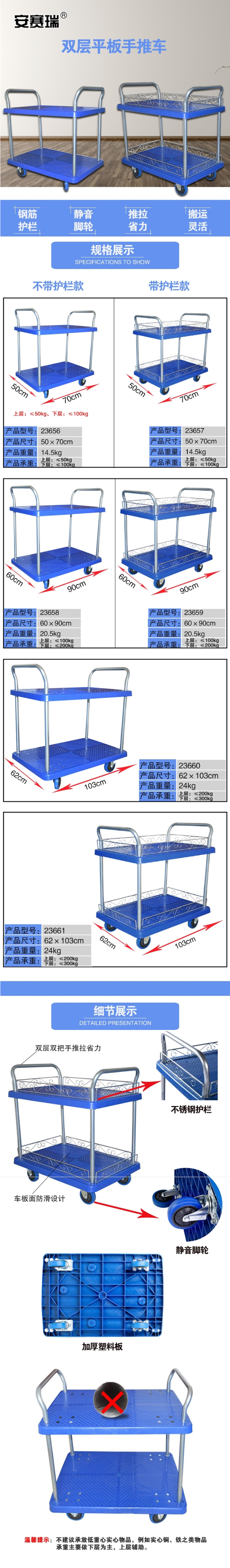安赛瑞 双层平板手推车 带护栏 62*103cm 承重500kg 23661