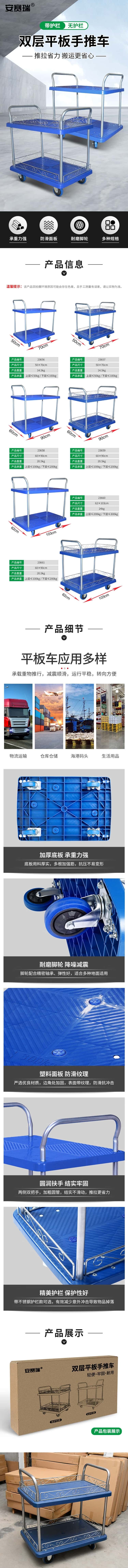 安赛瑞 23658 双层平板手推车 不带护栏 60*90cm 承重300kg (单位:台) 蓝色