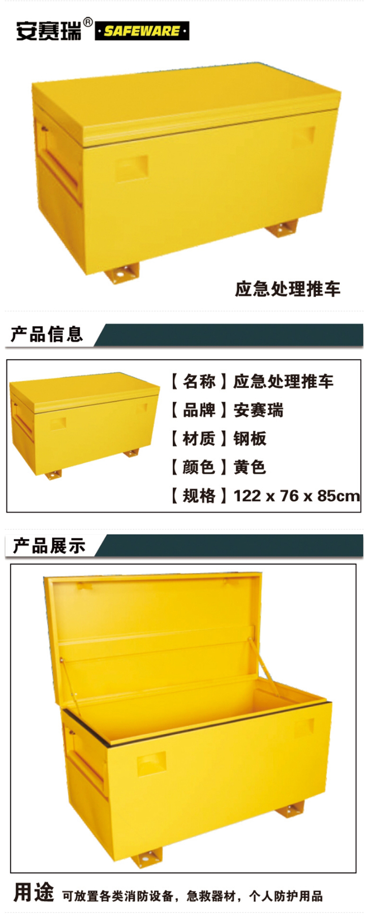 安赛瑞 应急处理推车 122*76*85cm 20372 黄色