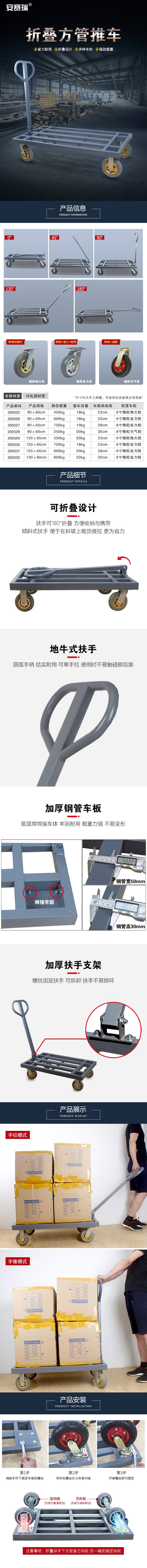 安赛瑞 折叠方管推车 90*60cm 承重250kg 8寸橡胶省力轮 200528