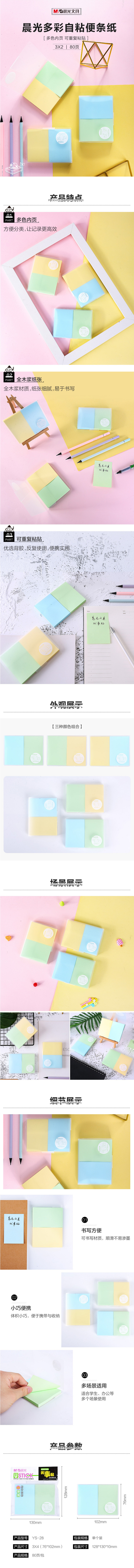 晨光(M&G) 二分条便利贴 YS-28 3*4 80页/本 混色