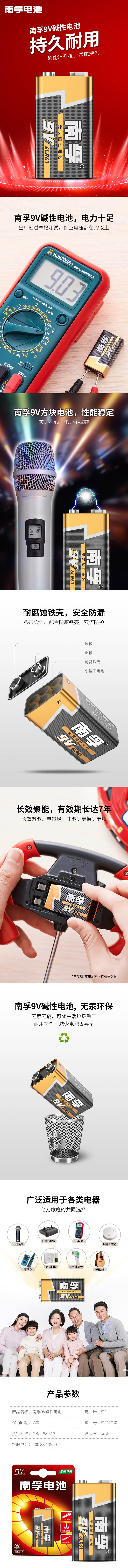 南孚(NANFU) 6LR61 9V 碱性电池 9V(单位:卡) 1粒装