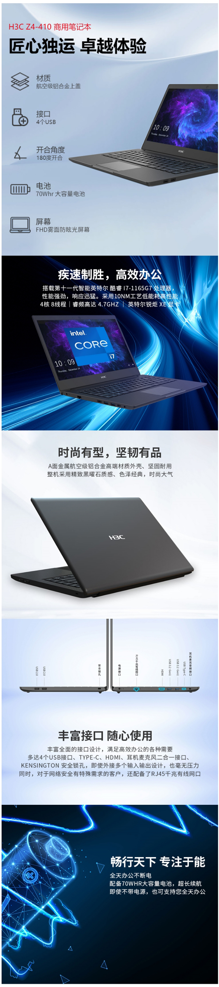 华三(H3C) 笔记本电脑 Z4-410 i7-1165G7/8G/512G固态/WiFi5 2*2无线/Win10家庭版