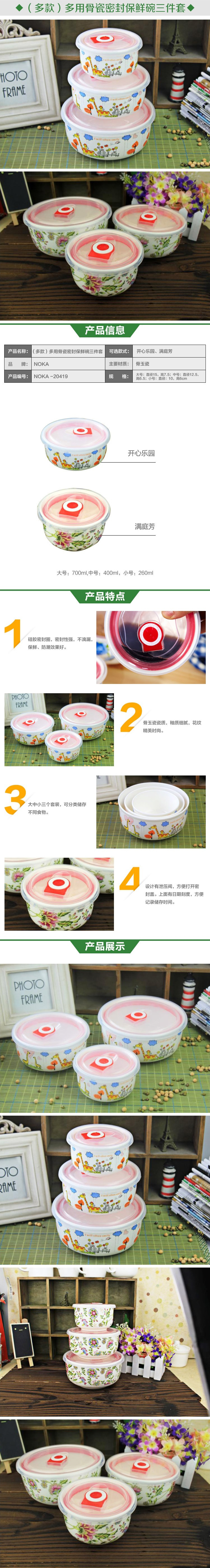 NOKA 骨瓷保鲜碗三件套 20419 漫庭芳