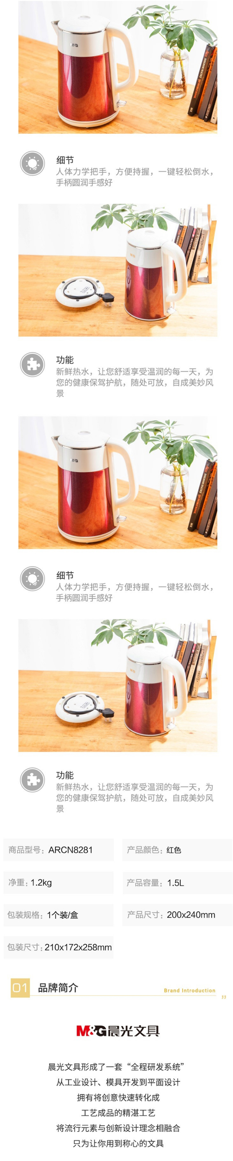 晨光(M&G) 电热水壶 ARCN8281 1.5L 红色
