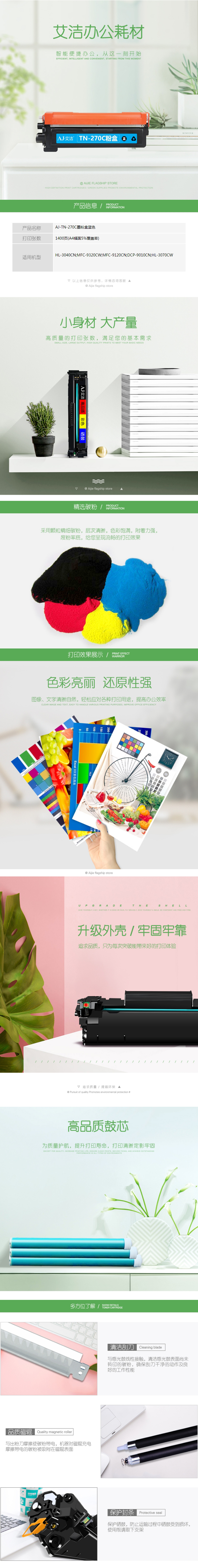 艾洁 AJ-TN-270C 墨粉盒 蓝色 适用兄弟HL3040DN 3070CW DCP9010CN MFC9320CW MFC9120CN 3045CN