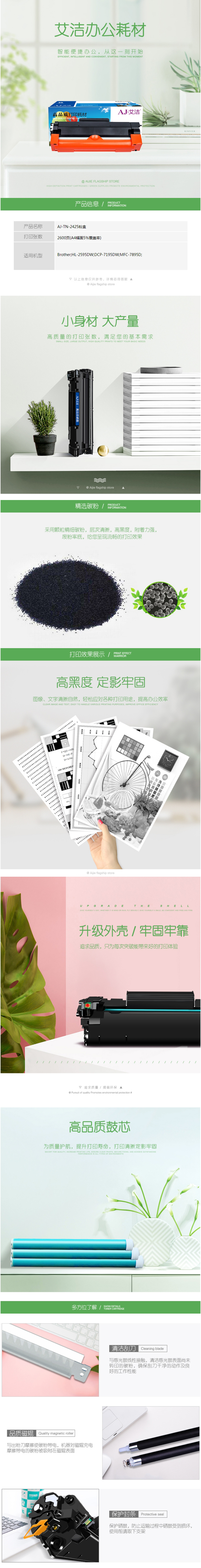艾洁 AJ-TN-2425 粉盒 黑色 适用兄弟HL-2595DW DCP-7195DW MFC-7895D