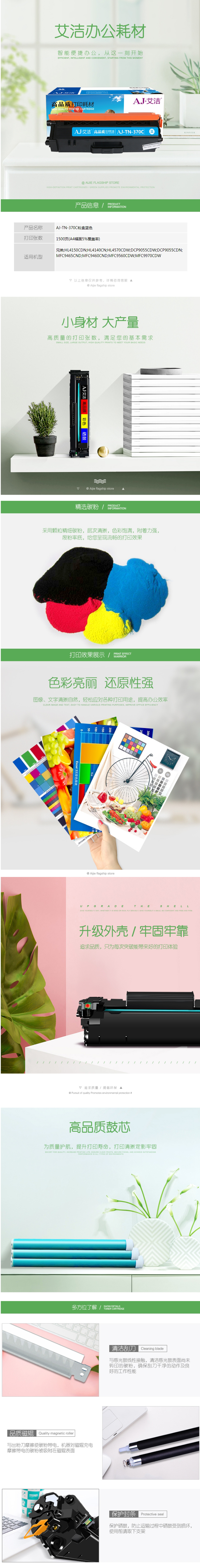 艾洁 AJ-TN-370C 粉盒 蓝色 适用兄弟brother HL 4150CDN HL4570CDW DCP9055CDN MFC9465CDN