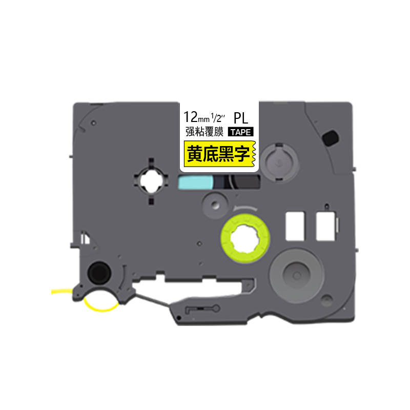 适用机型 适用兄弟标签机 色带12mm黄底黑字 TZe-631
