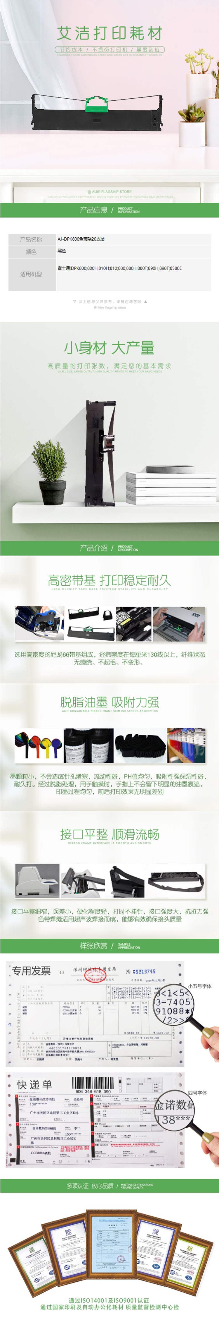 艾洁 AJ-DPK800 色带架 20支装 黑色 适用富士通FUJITSU DPK800 810 8580