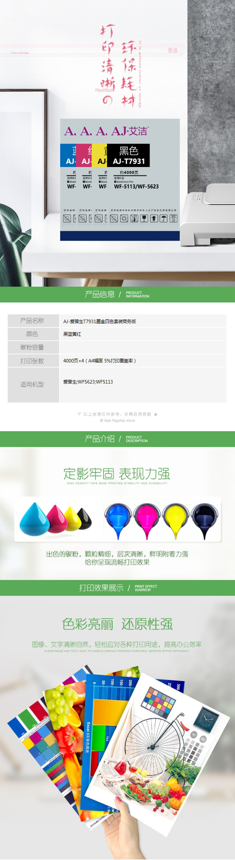 艾洁 AJ-爱普生T7931 墨盒四色套装商务版 适用爱普生WF5113 5623 5693