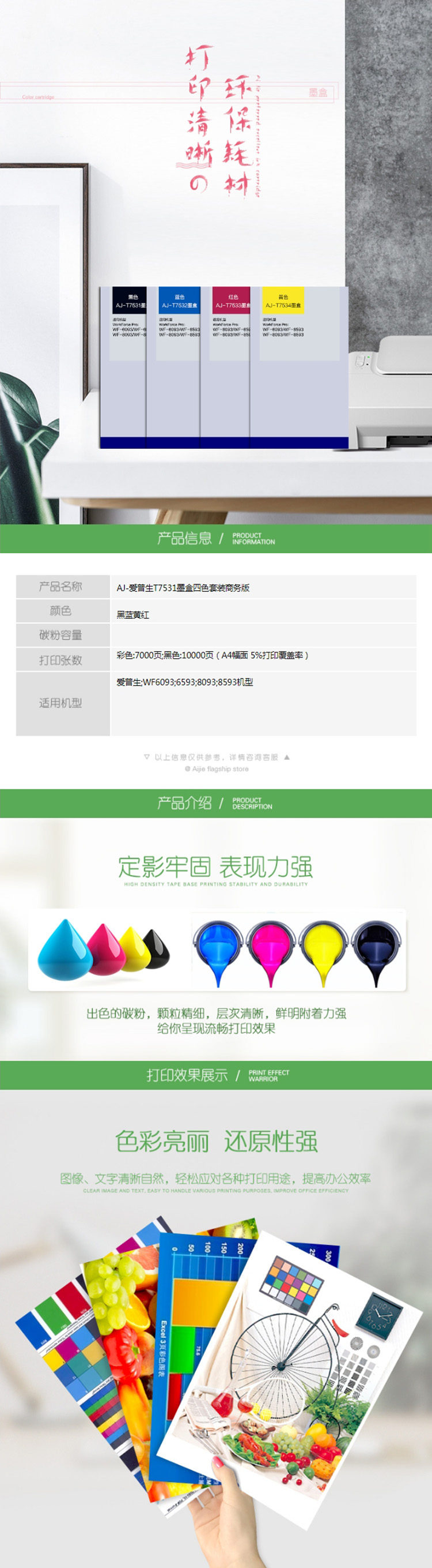 艾洁 AJ-爱普生T7531 墨盒四色套装商务版 适用爱普生WF6093 6593 8093 WF8593