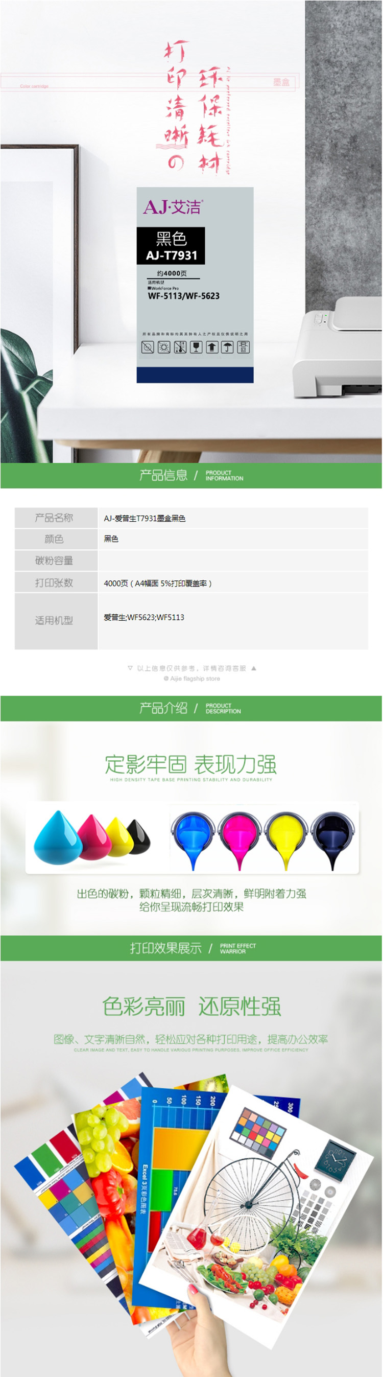 艾洁 AJ-爱普生T7931 墨盒 黑色 适用爱普生WF5113 5623 5693