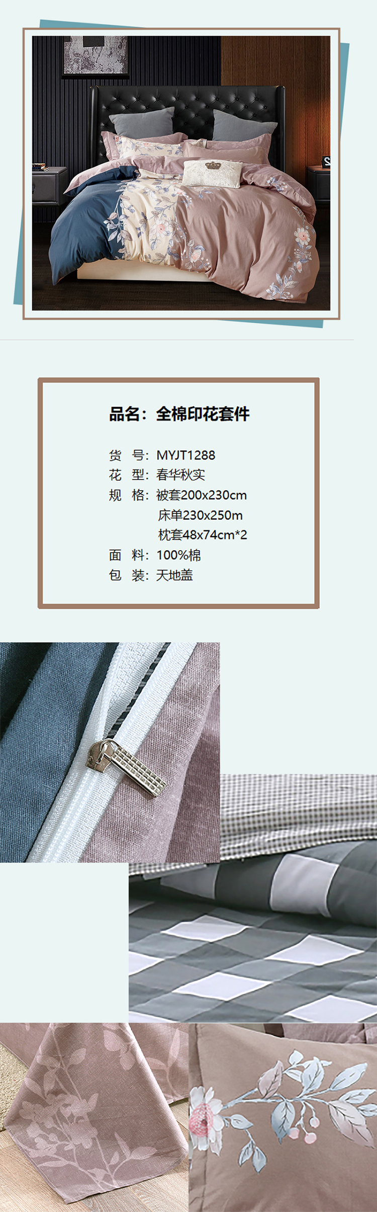 产品名称 全棉印花套件 春华秋实