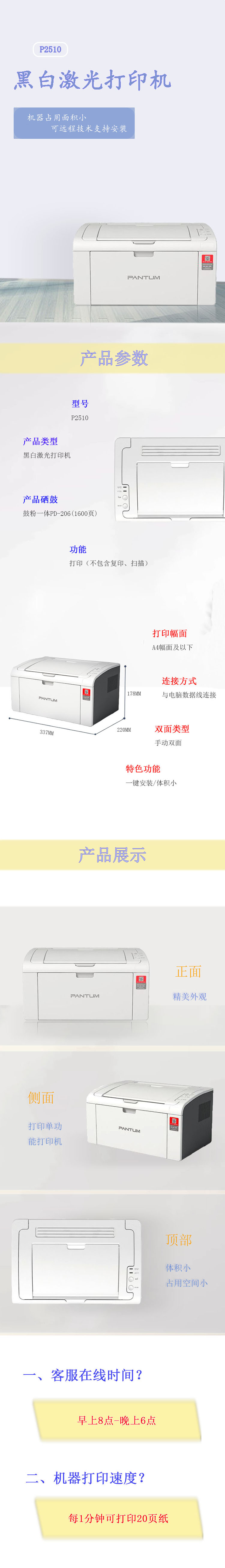 奔图(PANTUM) A4黑白激光打印机 P2510