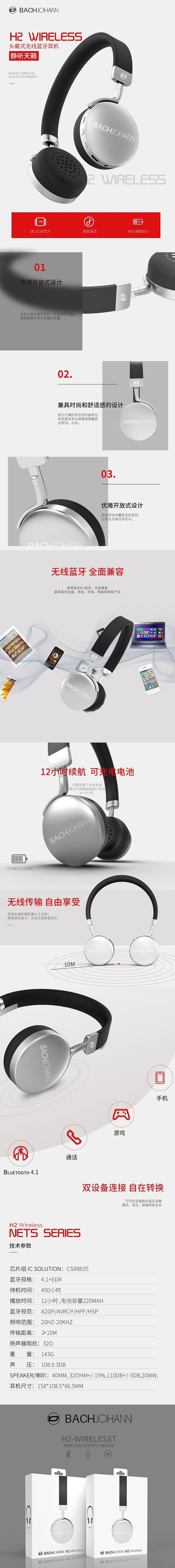 巴赫约翰(bach johann) 头戴式蓝牙耳机 H2 黑色