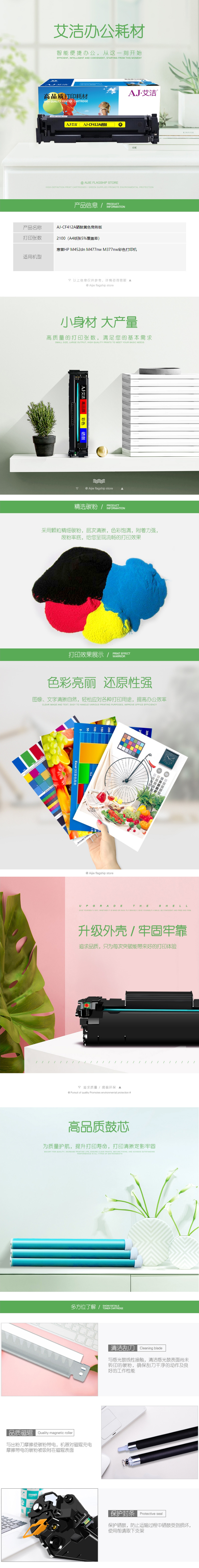 艾洁 AJ-CF412A 商务版黄色硒鼓 适用惠普HPM452dnM477nwM377nw彩色打印机硒鼓黄色
