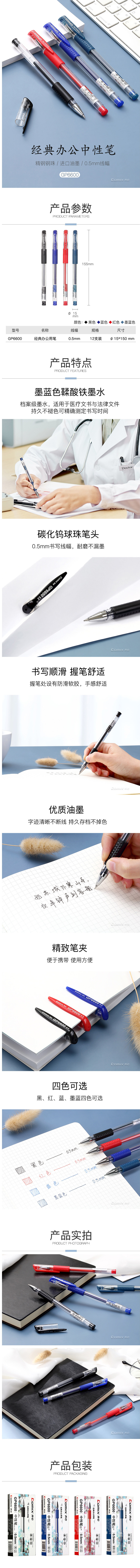齐心 GP6600 拔帽中性笔 0.5mm 墨蓝色 12支/盒