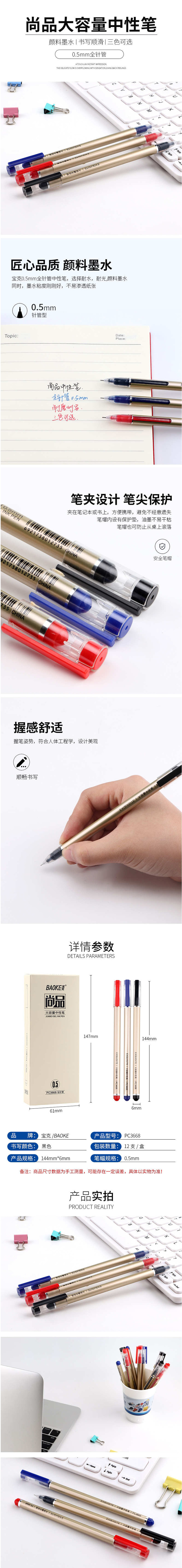 宝克 拔帽中性笔 PC3668 0.5mm 12支/盒 黑色