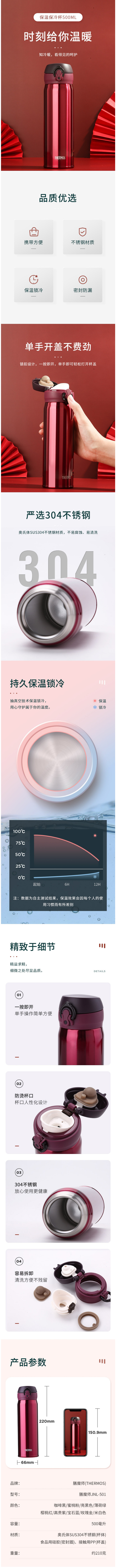 产品名称 THERMOS膳魔师保温杯500ml 不锈钢 JNL-501 樱桃红
