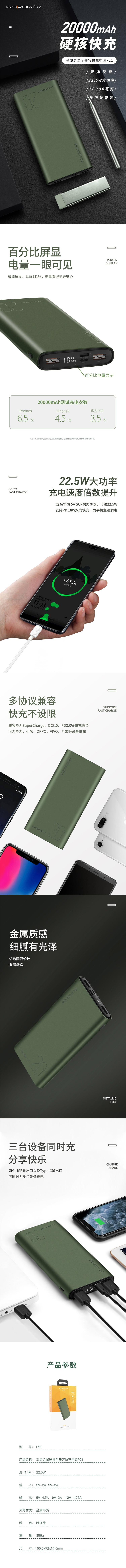 沃品(WOPOW) 金属屏显全兼容快充电源 P21 暗绿色
