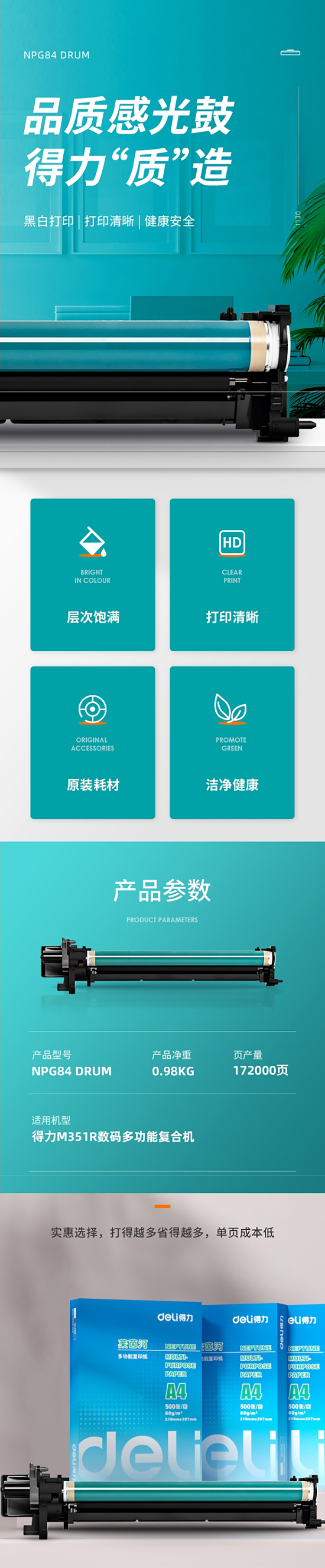 得力(deli) NPG84 DRUM 含芯片感光鼓 172000页 (单位:个) 适用得力M351R 黑色