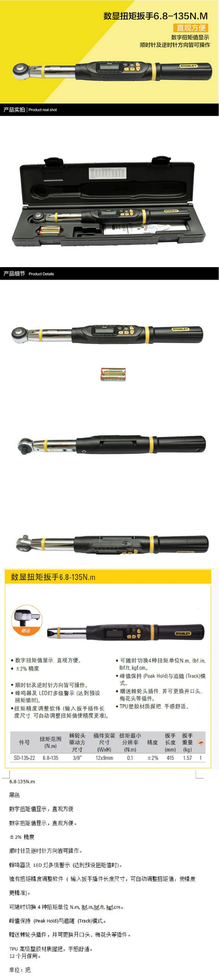 史丹利(Stanley) SD-135-22 数显扭矩扳手6.8-135N.m