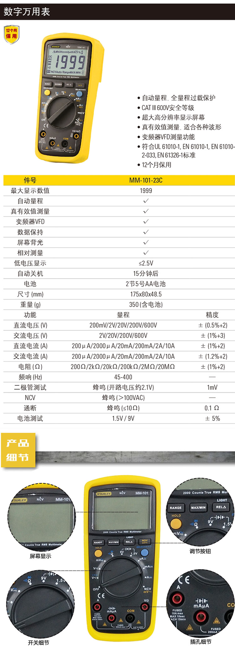 史丹利(Stanley) MM-101-23C 数字万用表