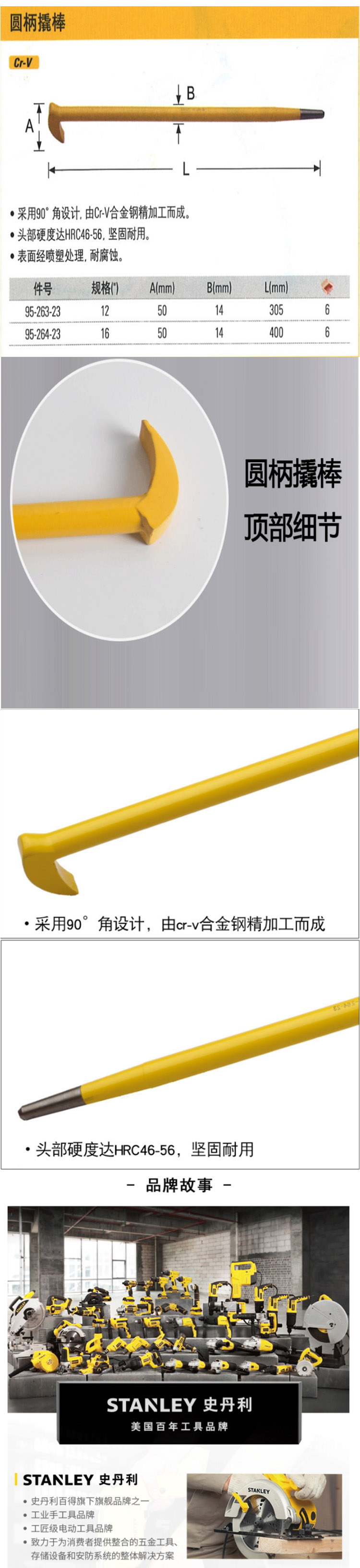 史丹利(Stanley) 95-264-23 圆柄撬棒16"(90°角)