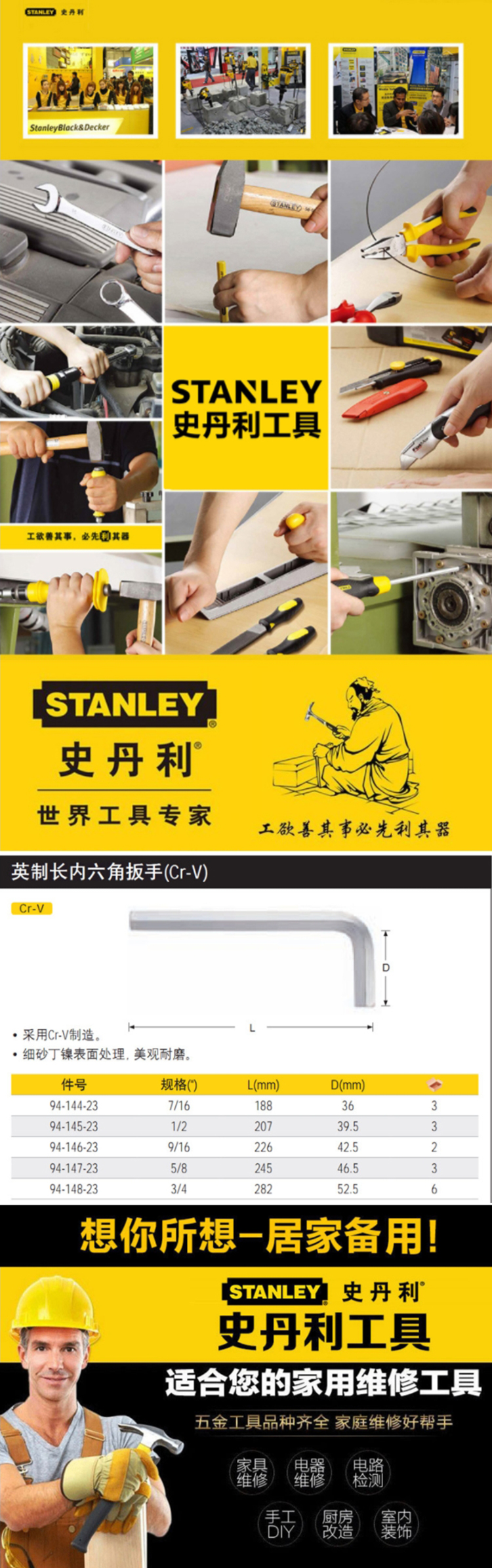 史丹利(Stanley) 94-145-23 英制长内六角扳手(Cr-V)1/2"