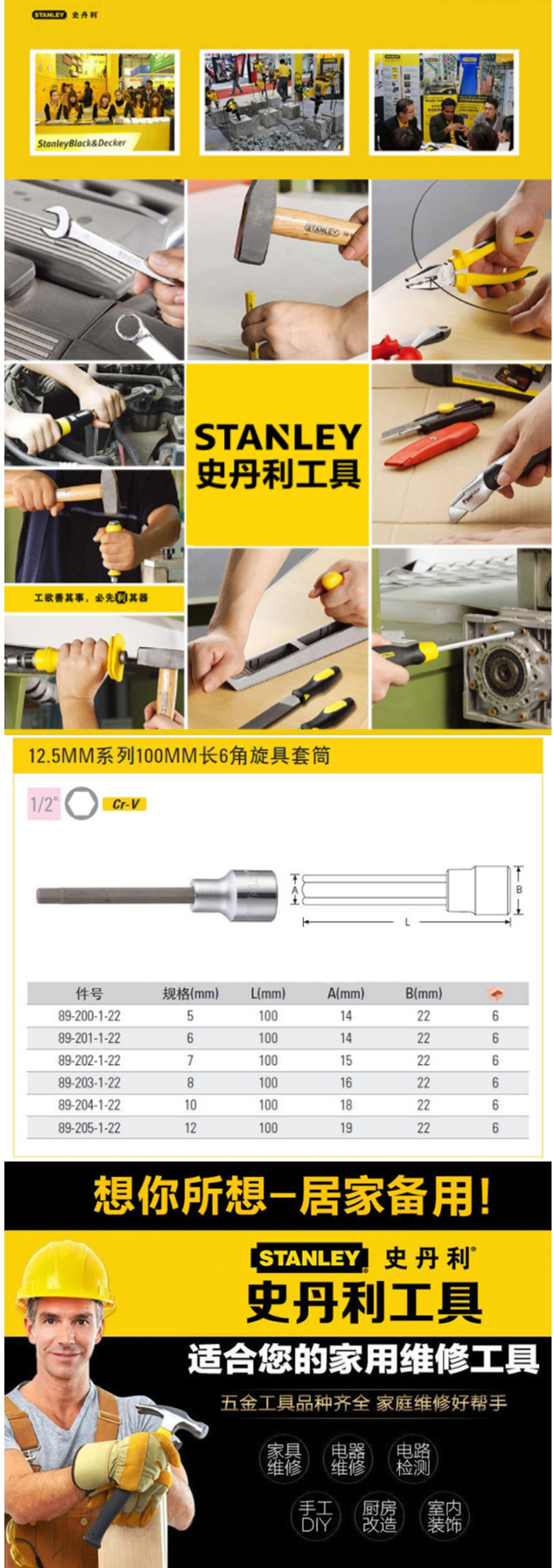 史丹利(Stanley) 89-201-1-22 12.5MM系列100mm长6角旋具套筒6mm