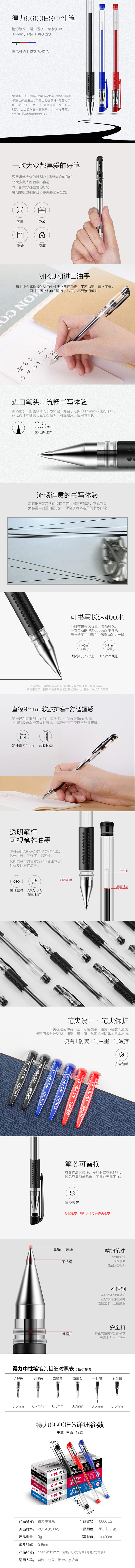 得力/deli 6600ES 0.5mm 拔帽中性笔 12支/盒(单位:支) 蓝色