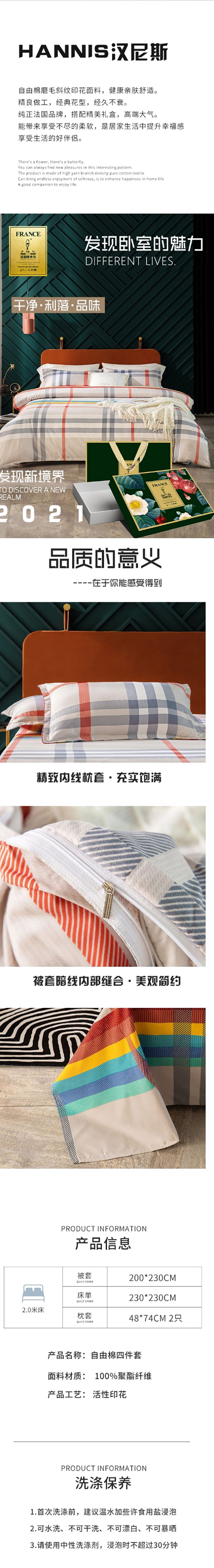 产品名称 啄木鸟 自由棉磨毛床品四件套-汉尼斯 200x230CM ZT-0016