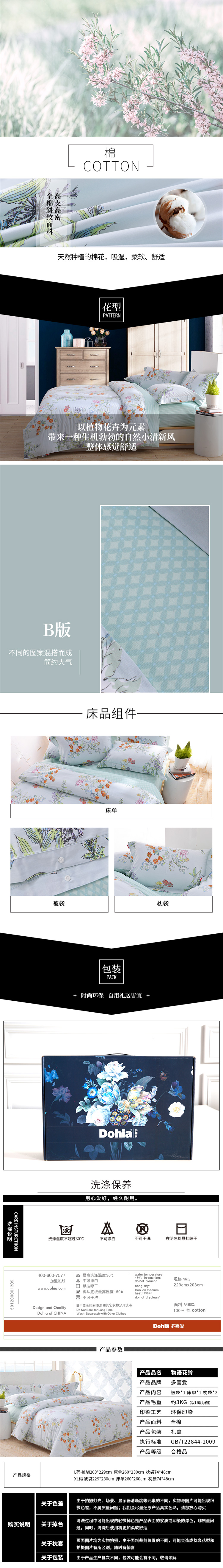 多喜爱(Dohia) 全棉优选床品四件套 203*229cm 物语花铃