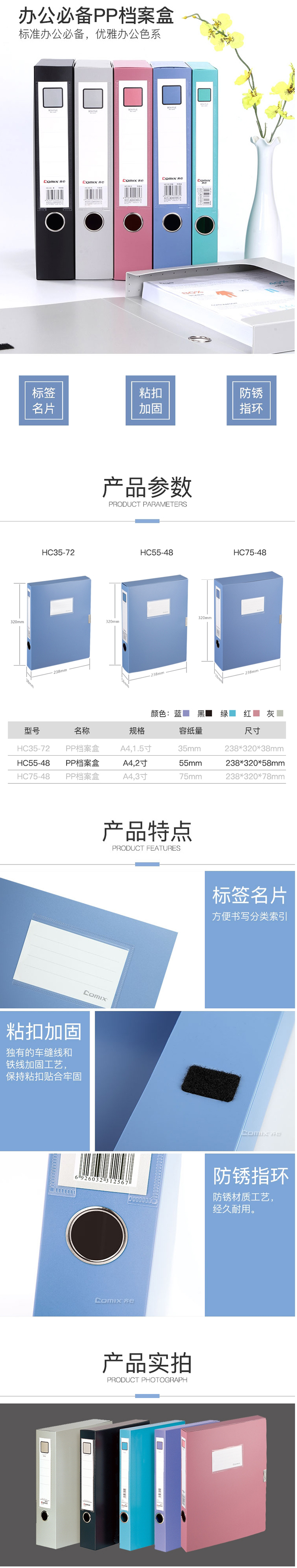 齐心(Comix) PP档案盒 HC55-48 A4 55MM 绯蓝色