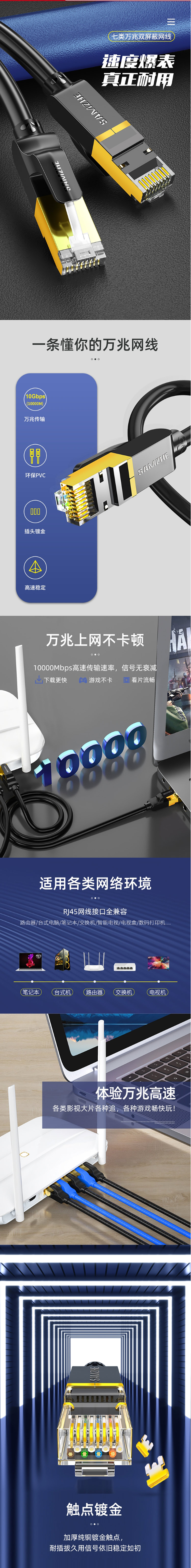 产品名称 工程级七类CAT77类纯铜镀金双屏蔽超高速网络跳线 40米