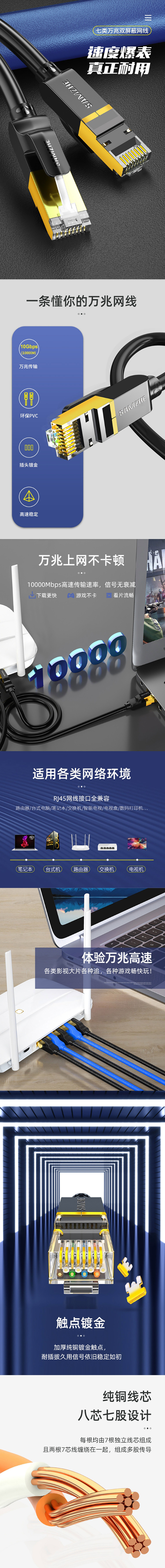 产品名称 工程级七类CAT7纯铜镀金双屏蔽超高速网络跳线 5米