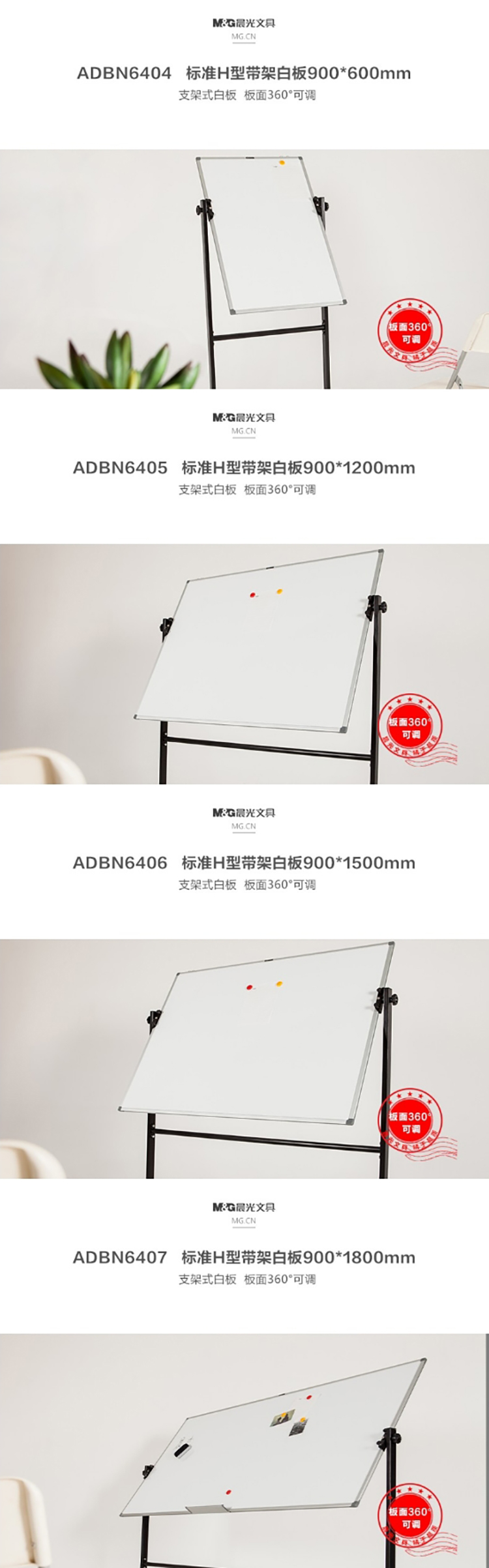 晨光 标准型H型带架白板 ADBN6406