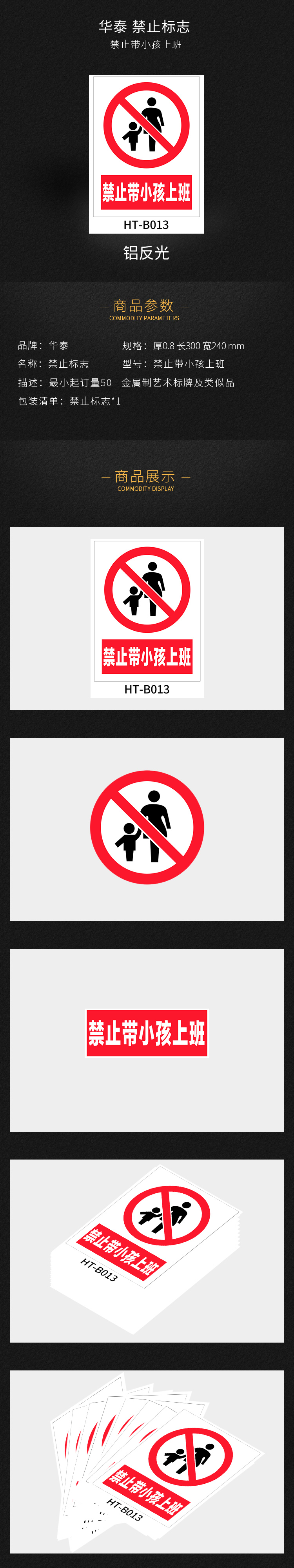 华泰 禁止带小孩上班 禁止标志 300*240*0.8mm (单位:张)