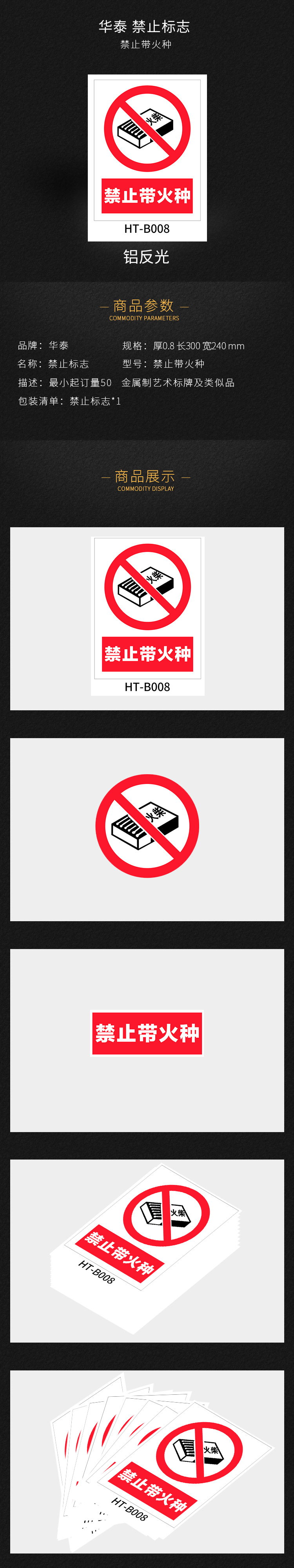 华泰 禁止带火种 禁止标志 300*240*0.8mm (单位:张)