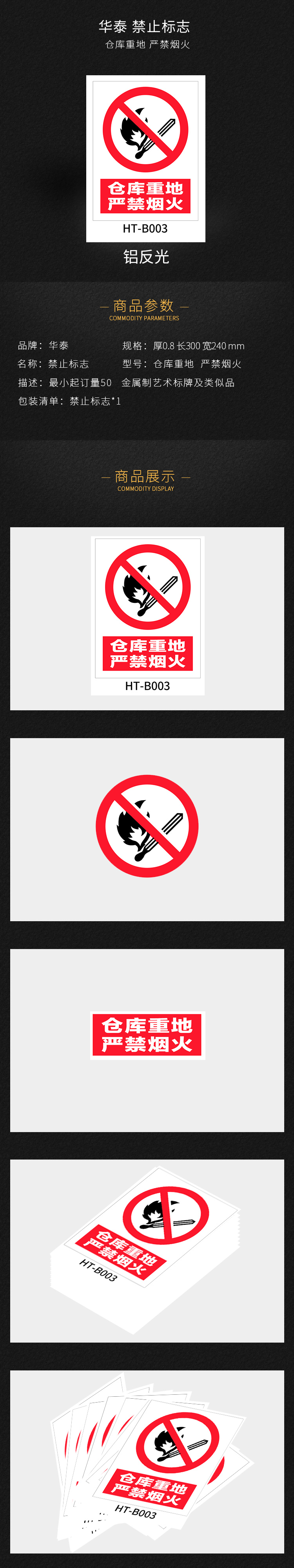 华泰 仓库重地 严禁烟火 禁止标志 300*240*0.8mm (单位:张)
